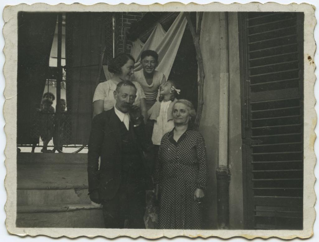 | osservazioni | Nella fotografia si riconoscono in primo piano a destra Pacifico Migliau e a sinistra sua moglie Michelina Segre in Migliau; dietro di loro da sinistra Rosina Passigli, Renato Passigli, Elena Passigli |