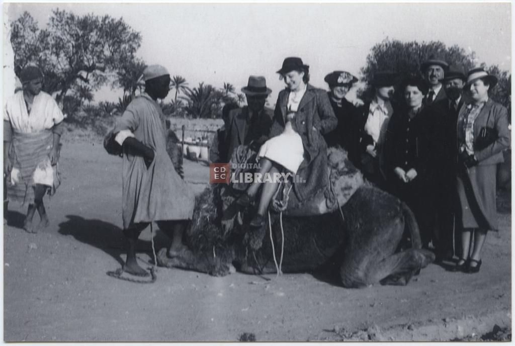 titolo attribuito | Ritratto di Vera Gutierres in Pariente su un cammello circondata da amici |