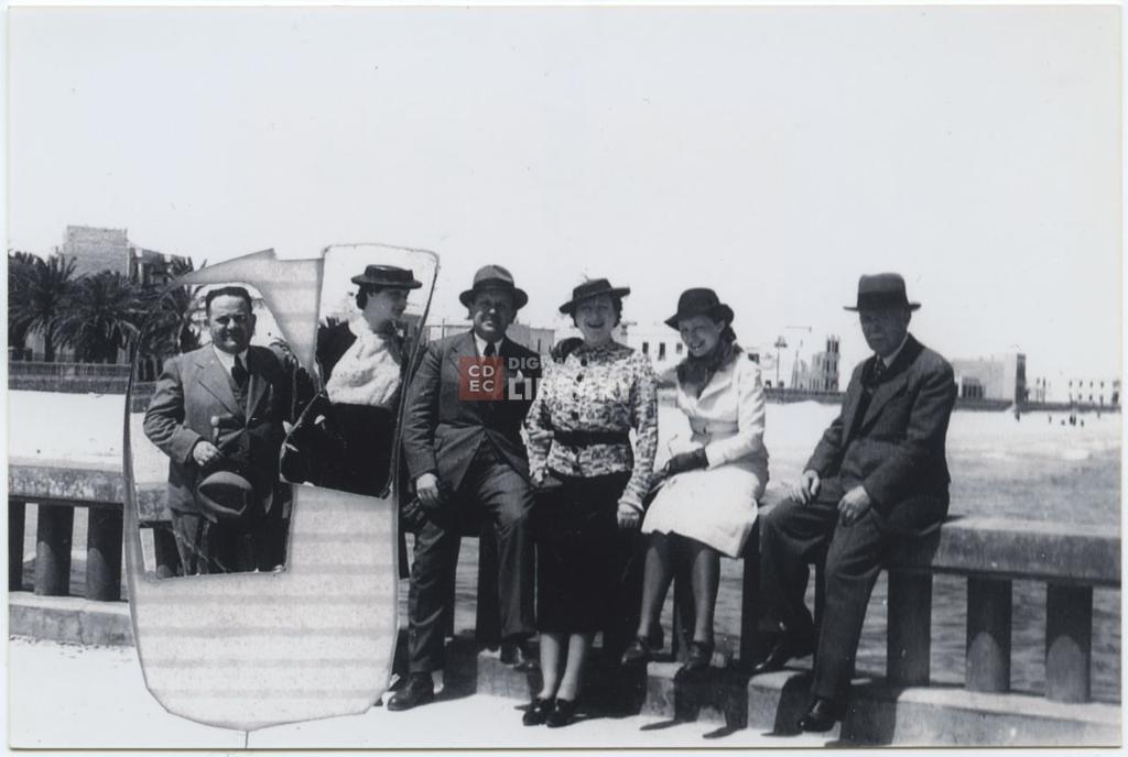 titolo attribuito | Ritratto dei coniugi Vera e Giulio Pariente insieme ad amici sul lungomare di Tunisi |
