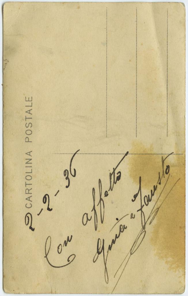 | iscrizioni | sul verso del supporto la dedica "2-2-36 con affetto Gina e Fausto" |