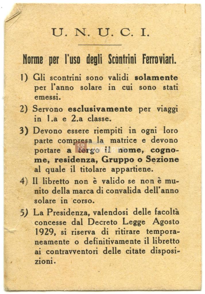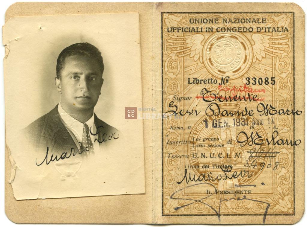 | osservazioni | Il libretto n. 33805 emesso dall'U.N.U.C.I. consentiva al tenente (poi corretto in capitano) Levi Davide Mario viaggi sulle Ferrovie dello Stato |