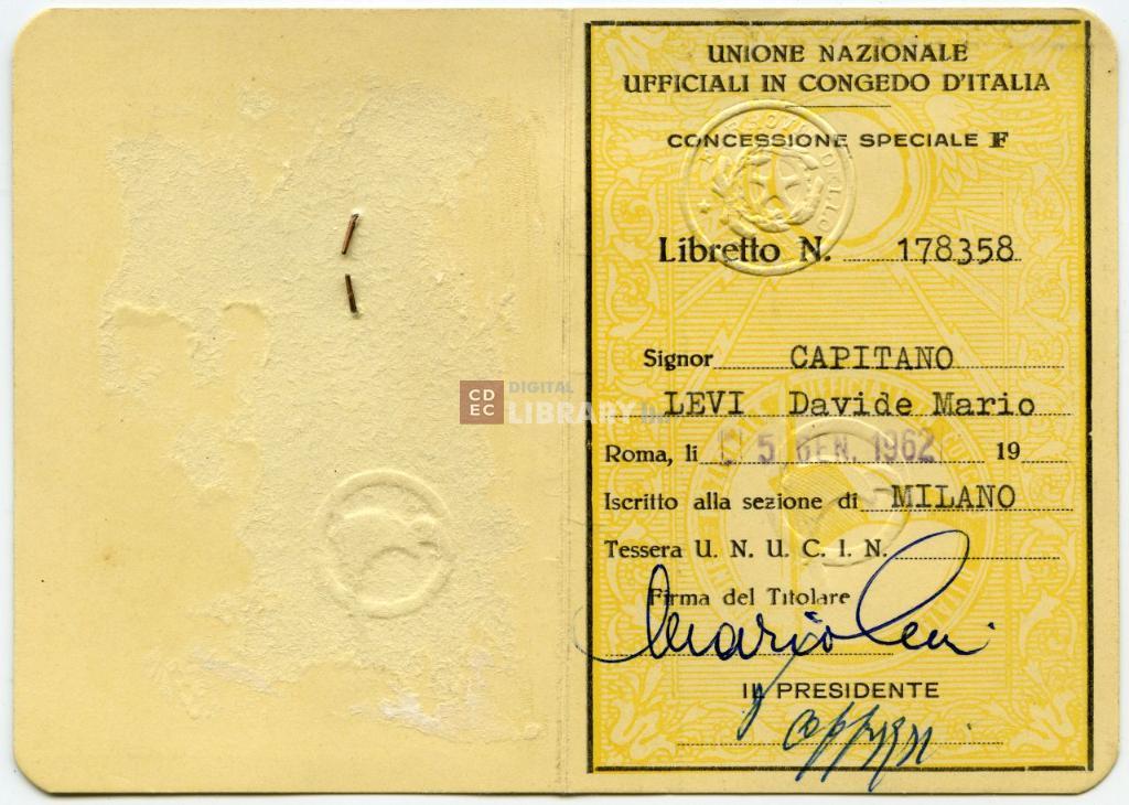| titolo attribuito | Libretto dell'Unione Nazionale Ufficiali in Congedo d'Italia di Levi Davide Mario |