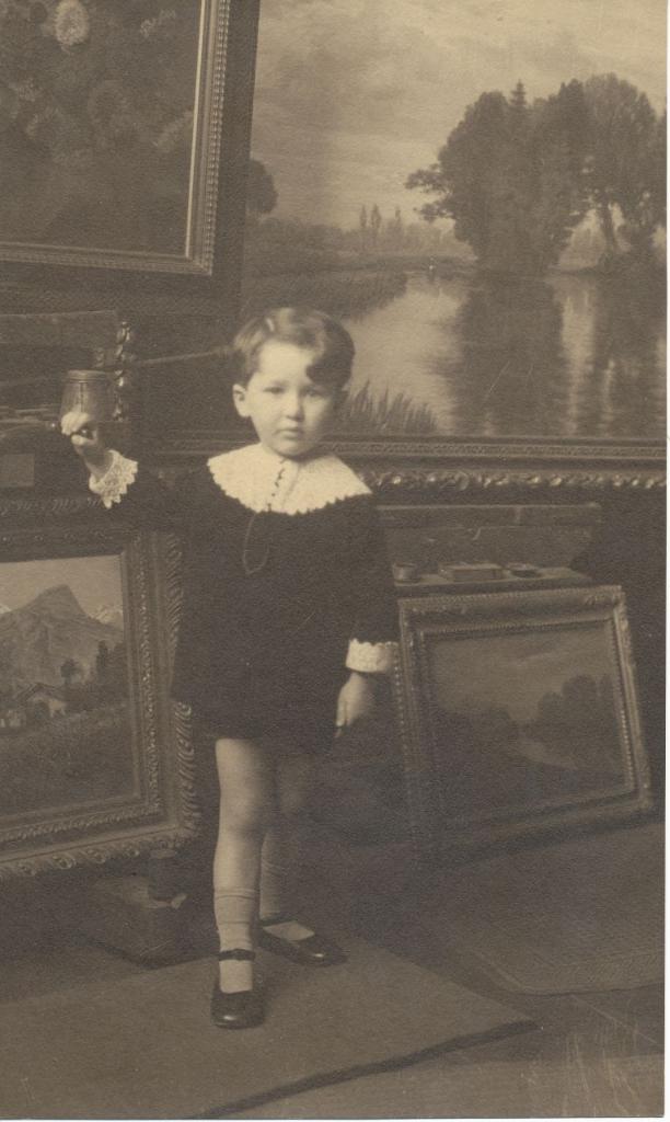 | osservazioni | Ugo Sacerdote a cinque anni accanto ai quadri dipinti dal padre Anselmo Sacerdote. Lo scatto fotografico potrebbe essere opera sempre di Anselmo Sacerdote, pittore e fotografo. |