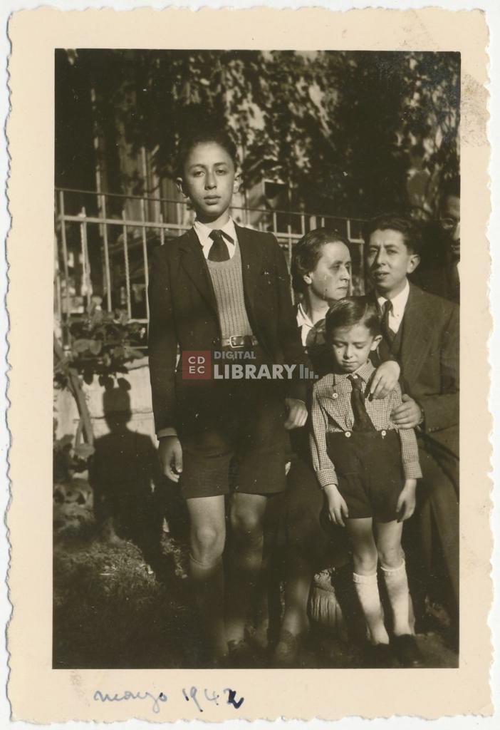 osservazioni | Da sinistra Franco Valabrega, Gisella Lahmi in Valabrega, Enzo De Benedetti bambino e Valerio Valabrega (padre della donatrice Adriana Valabrega Tedeschi) |
