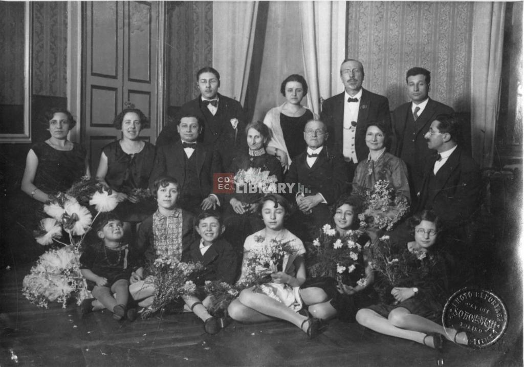 titolo attribuito | Ritratto di Moise Valabrega ed Ester Finzi in Valabrega con i familiari il giorno dell'anniversario dei 50 anni di matrimonio |