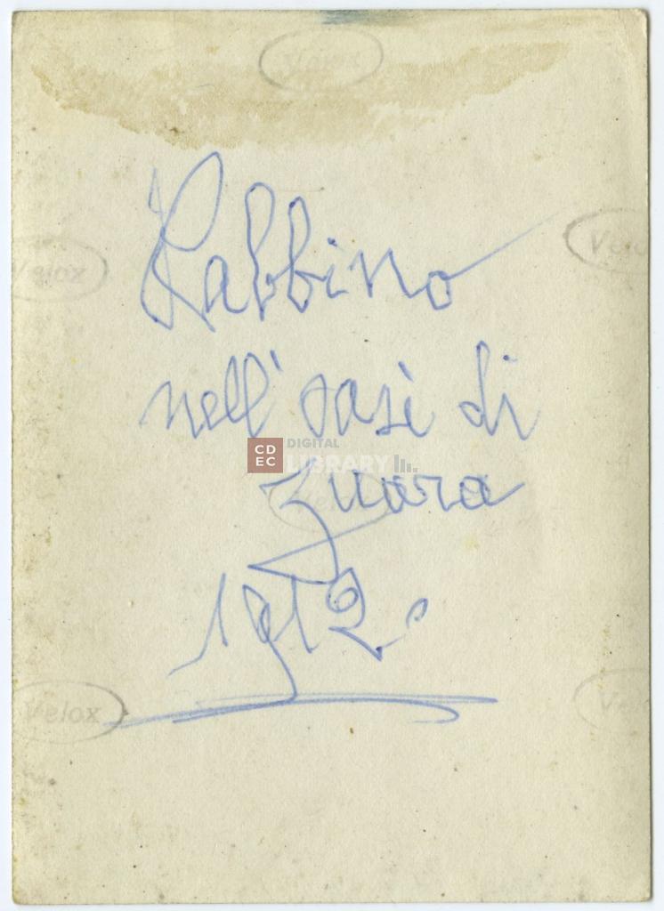 iscrizioni | sul verso del supporto l'indicazione manoscritta "Rabbino nell'oasi di Zuara 1912" |