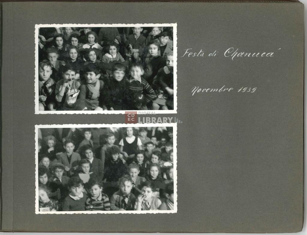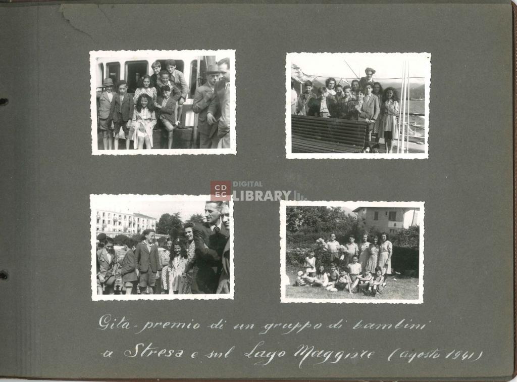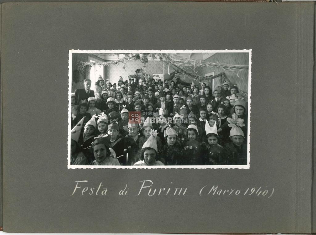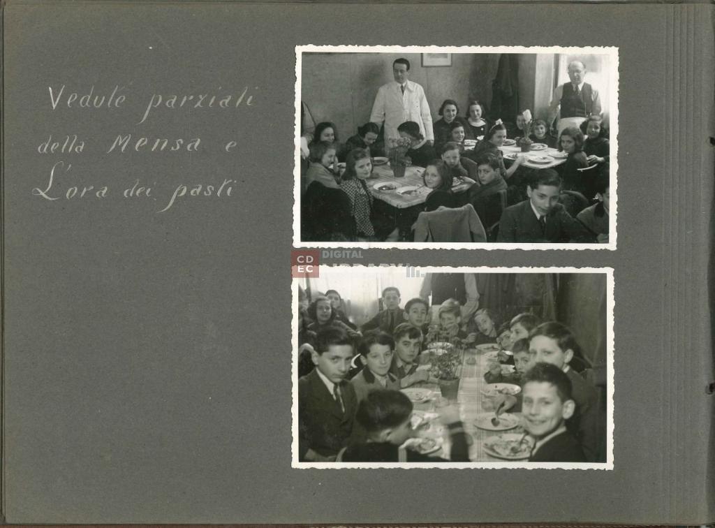 notizie storico-critiche | L'album, intitolato "Giochi, Gite, Feste organizzate dalla Mensa dei Bambini" (come si legge nell'etichetta apposta sulla coperta dell'album oggi andata perduta), fu prodotto da Israel Kalk per illustrare le attività educative e ricreative organizzate dalla Mensa dei Bambini di Milano. Gli scatti ritraggono i bambini ospiti della Mensa sia all'interno dei locali dell'istituto - in occasione ad esempio della Festa di Chanukkà nel novembre 1939 e della Festa di Purim del marzo 1940 -, sia all'esterno durante momenti di svago e gite, come quelle al parco di Monza il 12 maggio 1940 o sul Lago Maggiore nell'agosto 1941. Nell'album sono inoltre riprodotte le cartoline d'auguri per il Capodanno ebraico del 1941 e il Capodanno civile del 1942, e infine un ritratto degli alunni e maestri della scuola del campo di internamento di Ferramonti di Tarsia. |