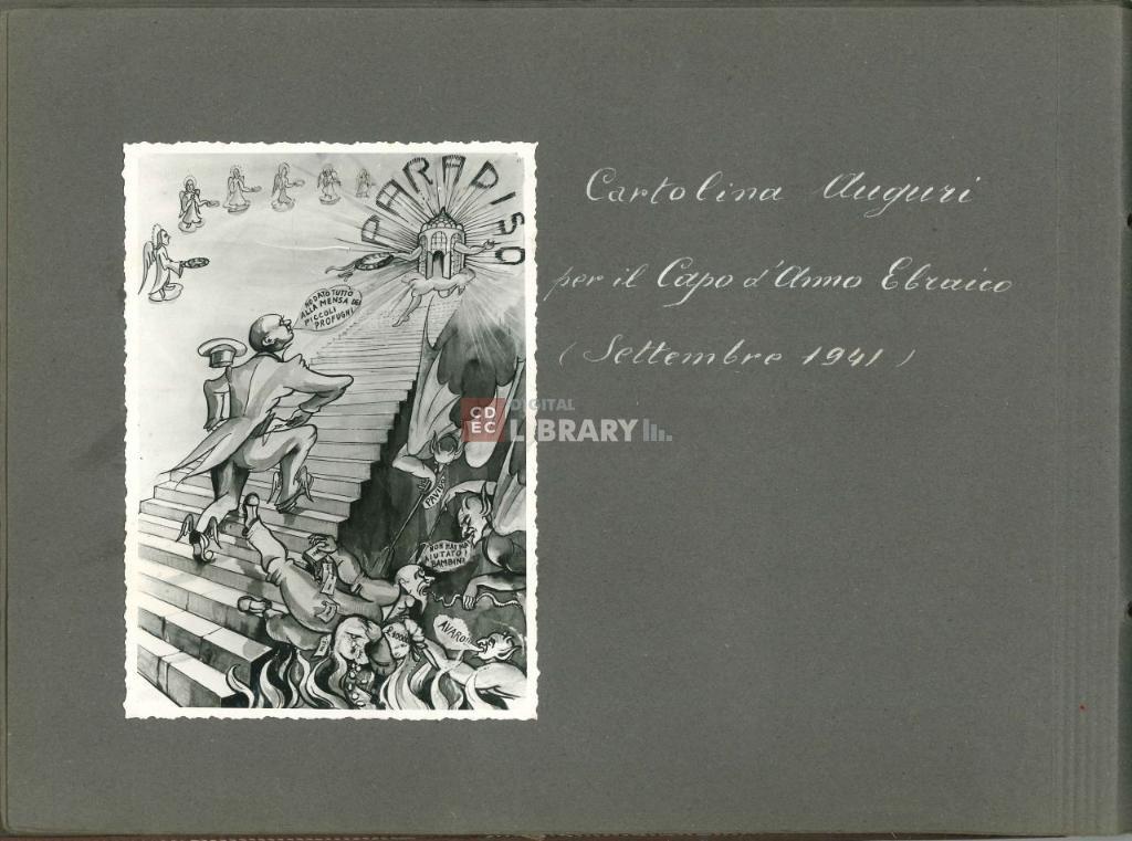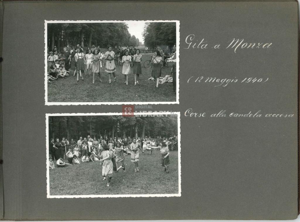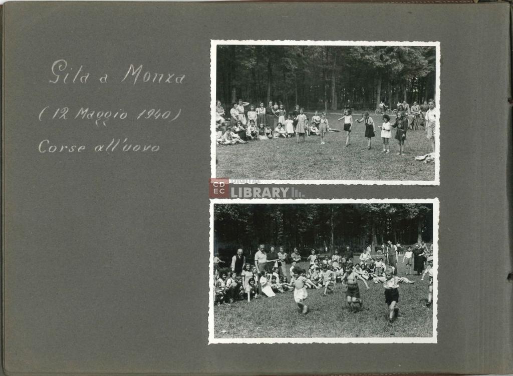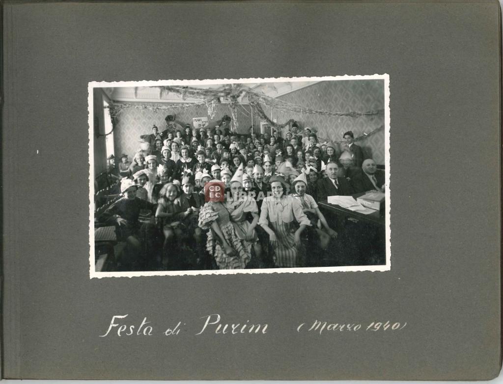 notizie storico-critiche | L'album, intitolato "Giochi, Gite, Feste organizzate dalla Mensa dei Bambini" (come si legge nell'etichetta apposta sulla coperta dell'album oggi andata perduta), fu prodotto da Israel Kalk per illustrare le attività educative e ricreative organizzate dalla Mensa dei Bambini di Milano. Gli scatti ritraggono i bambini ospiti della Mensa sia all'interno dei locali dell'istituto - in occasione ad esempio della Festa di Chanukkà nel novembre 1939 e della Festa di Purim del marzo 1940 -, sia all'esterno durante momenti di svago e gite, come quelle al parco di Monza il 12 maggio 1940 o sul Lago Maggiore nell'agosto 1941. Nell'album sono inoltre riprodotte le cartoline d'auguri per il Capodanno ebraico del 1941 e il Capodanno civile del 1942, e infine un ritratto degli alunni e maestri della scuola del campo di internamento di Ferramonti di Tarsia. |