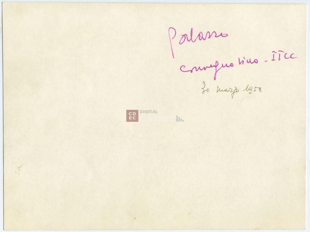 iscrizioni | sul verso del supporto l'indicazione manoscritta a penna rossa "Palazzo convegno vino - IICC" e a matita "30 marzo 1958" |