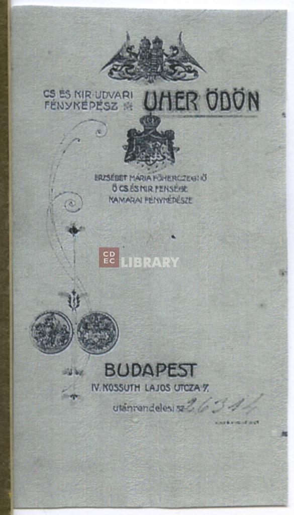 | timbri, marchi | sul recto del supporto secondario in basso e sul verso del supporto secondario il marchio commerciale del fotografo in lingua ungherese |