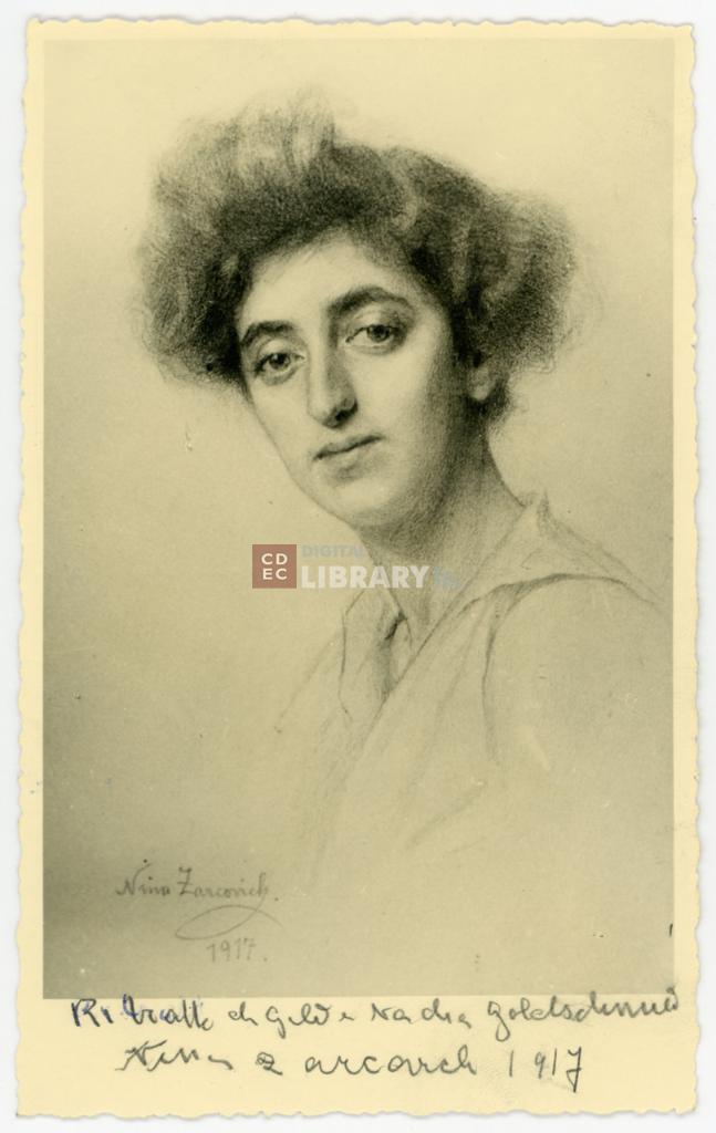 osservazioni | "Ritratto di Gilda Nadia Goldschmied" eseguito a grafite da Nina Zarcovich nel 1917 |