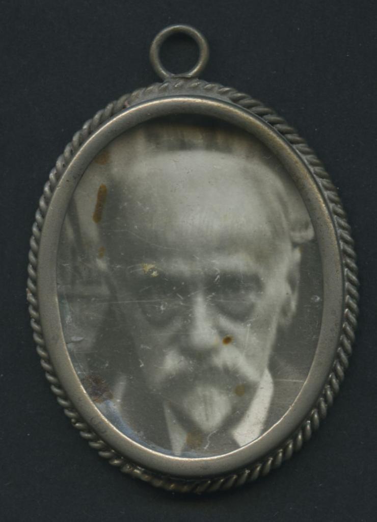 | indicazioni sull'oggetto | stampa fotografica in un medaglione di metallo di dimensioni 42x32 mm |