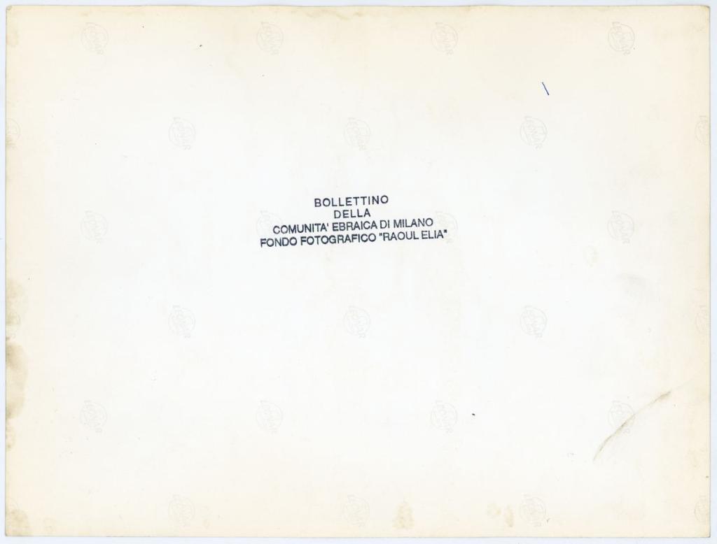 | timbri, marchi | sul verso del supporto il timbro a inchiostro "Bollettino della Comunità ebraica di Milano/ Fondo Fotografico Raoul Elia" |
