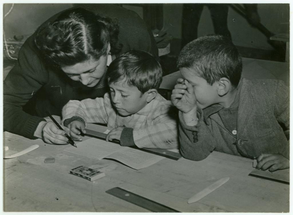 | titolo attribuito | Ritratto di alcuni allievi con la maestra durante una lezione di cartonaggio alla scuola ORT di Grugliasco |
