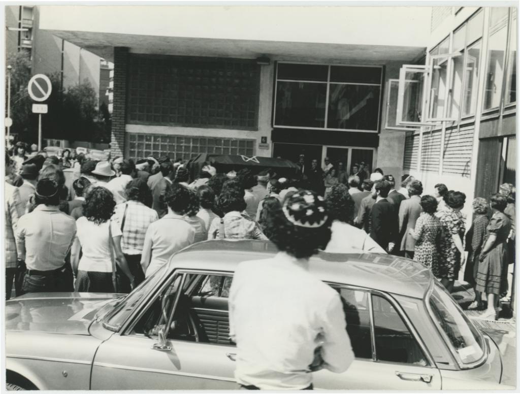 | titolo attribuito | Folla all'ingresso della scuola ebraica di via Sally Mayer durante i funerali del Preside David Schaumann |