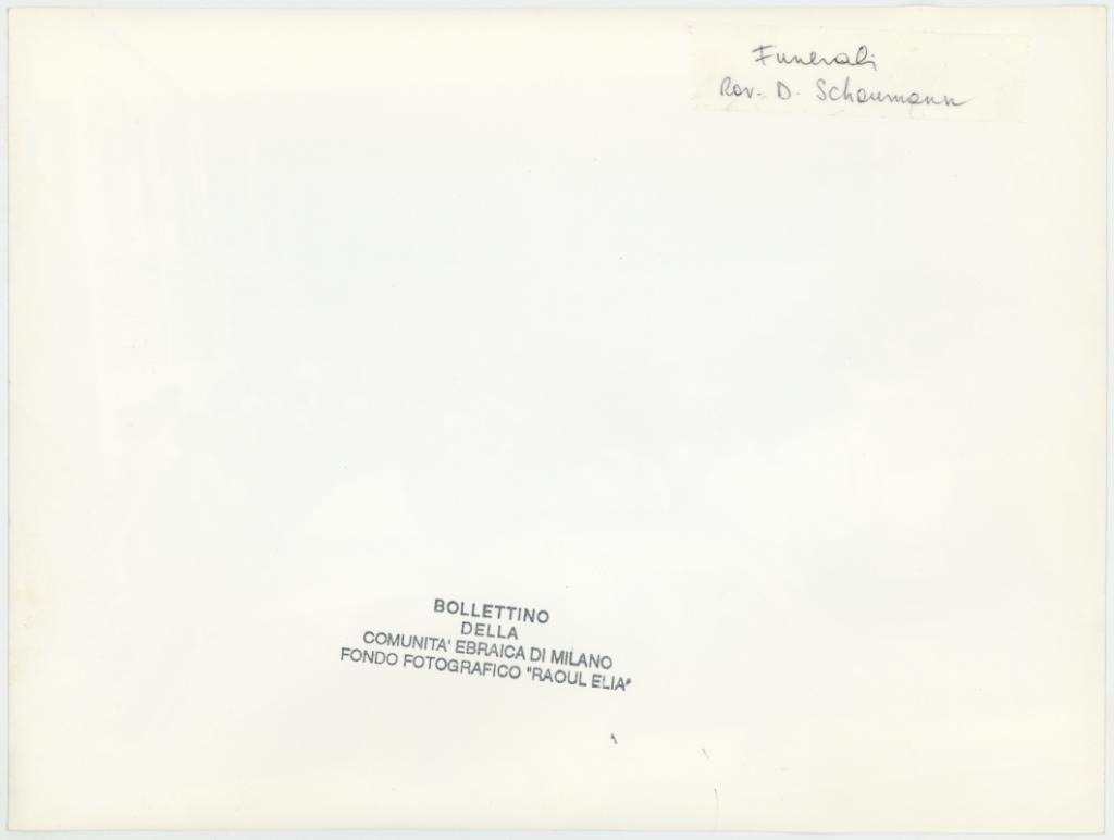 | timbri, marchi | sul verso del supporto il timbro a inchiostro "Bollettino della Comunità ebraica di Milano/ Fondo Fotografico Raoul Elia" |