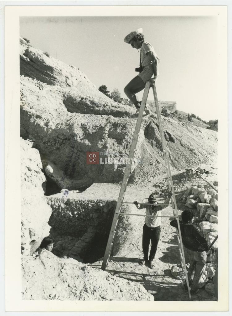 osservazioni | In cima alla scala a pioli l'archeologo-capo Yigal Shiloh, che diresse gli scavi della Città di Davide a Gerusalemme dal 1978 al 1985 |
