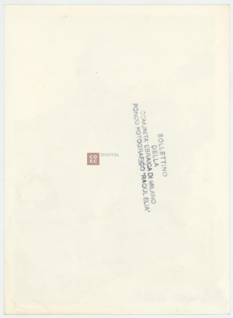 timbri, marchi | sul verso del supporto il timbro a inchiostro "Bollettino della Comunità ebraica di Milano/ Fondo Fotografico Raoul Elia" |