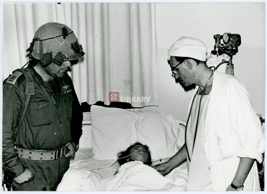 titolo attribuito | Ritratto di un medico e un soldato accanto a una bambina in una stanza d'ospedale a Gerusalemme |