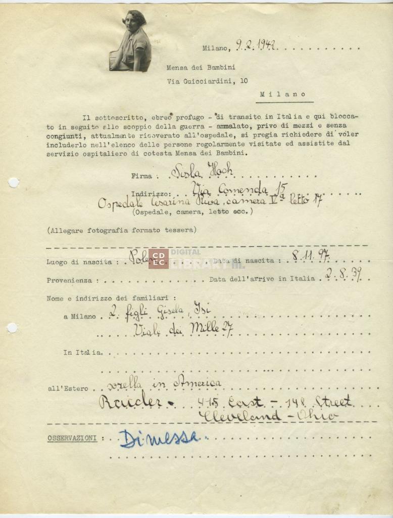 | osservazioni | Il 9 febbraio 1942 Sisla Hoch fa richiesta all'Opera Mensa dei bambini per ricevere l'assistenza ospitaliera presso il padiglione Cesarina Riva dell'Ospedale Policlinico di Milano |