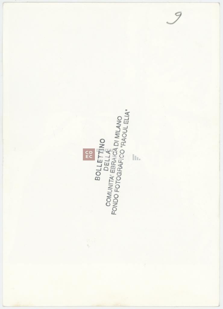 timbri, marchi | sul verso del supporto il timbro a inchiostro "Bollettino della Comunità ebraica di Milano/ Fondo Fotografico Raoul Elia" |