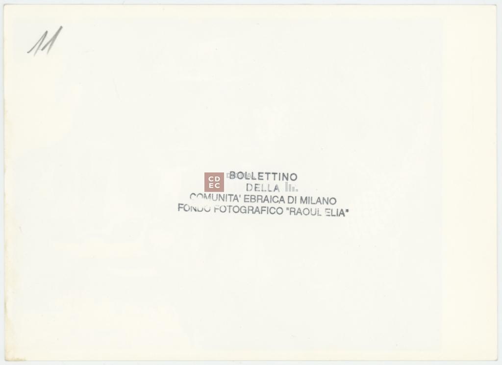 timbri, marchi | sul verso del supporto il timbro a inchiostro "Bollettino della Comunità ebraica di Milano/ Fondo Fotografico Raoul Elia" |
