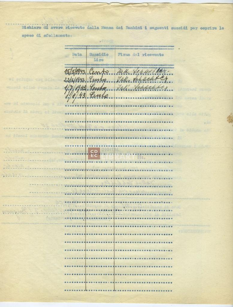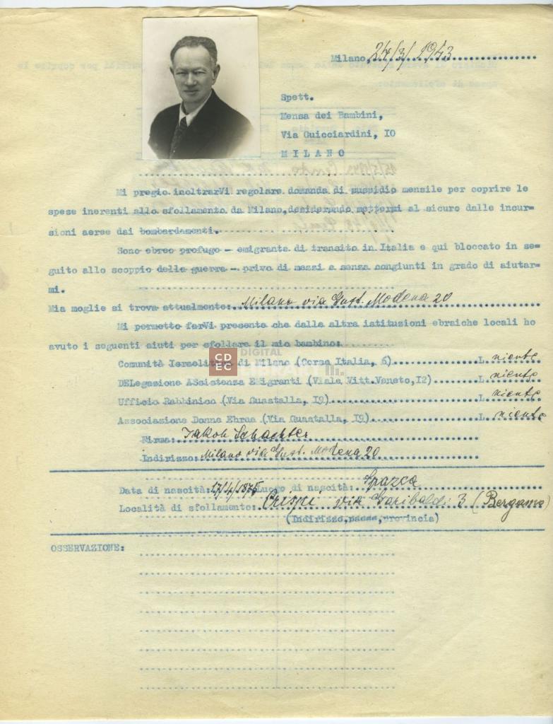 | osservazioni | Il 24 marzo 1943 Jakob Schachter, sfollato a Crispi (Bergamo), fa domanda all'Opera Mensa dei Bambini per ricevere un sussidio mensile |