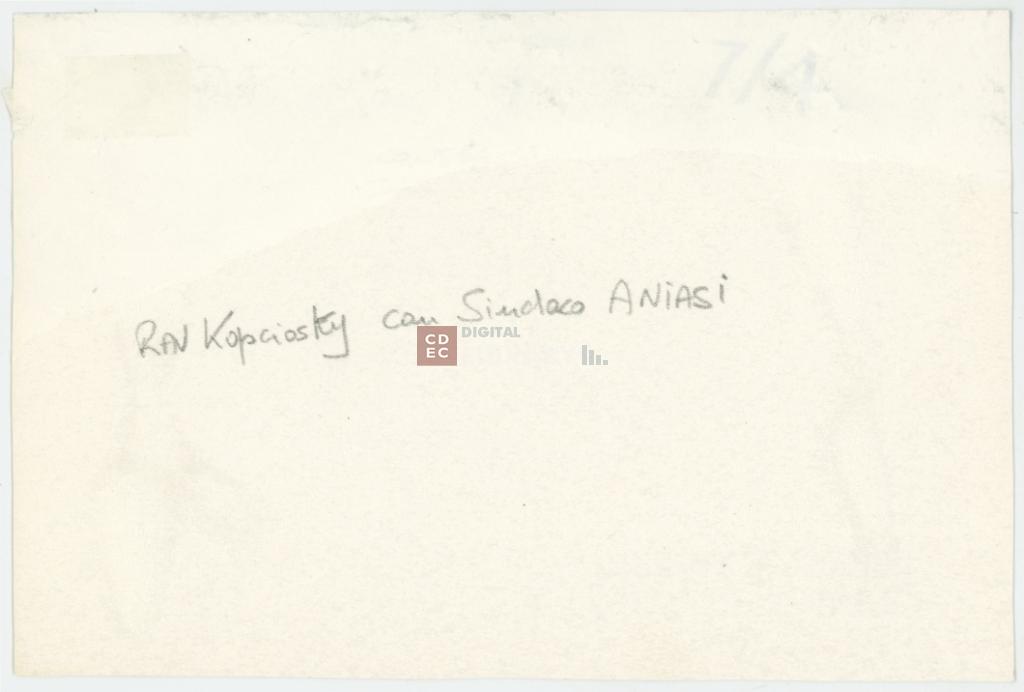 iscrizioni | sul verso del supporto primario iscrizione manoscritta a penna "Consegna Diploma Comunale a Rav Kopciowsky" - sul verso del supporto secondario "Rav Kopciosky con Sindaco Aniasi" |