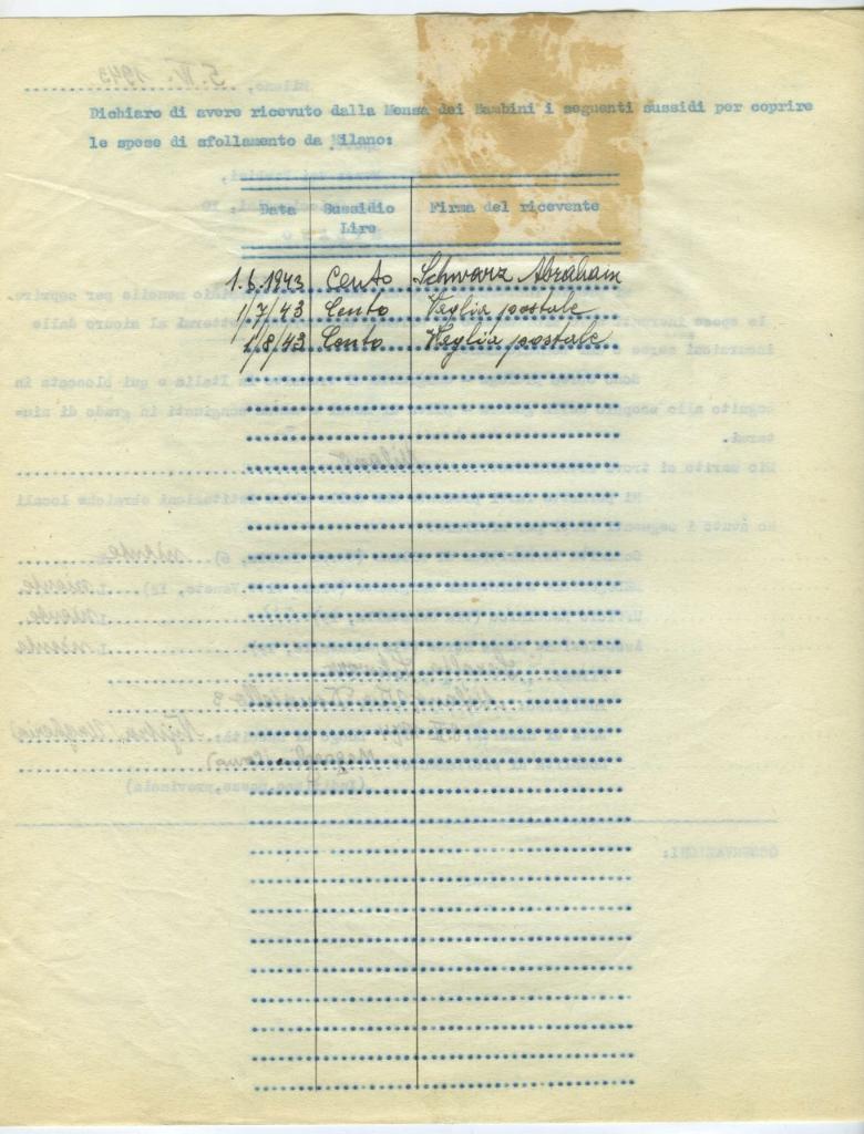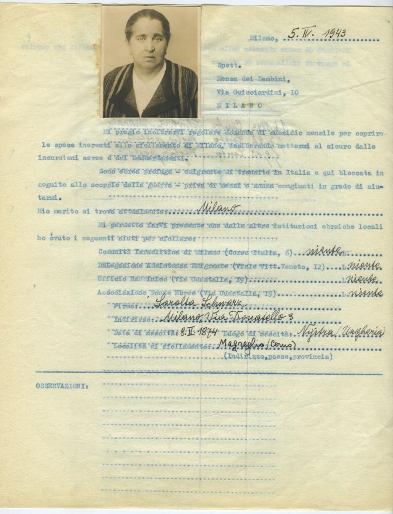 | osservazioni | Il 5 aprile 1943 Sarolta Gluk in Schwarz, sfollata a Magreglio (Como), fa domanda all'Opera Mensa dei Bambini per ricevere un sussidio mensile |