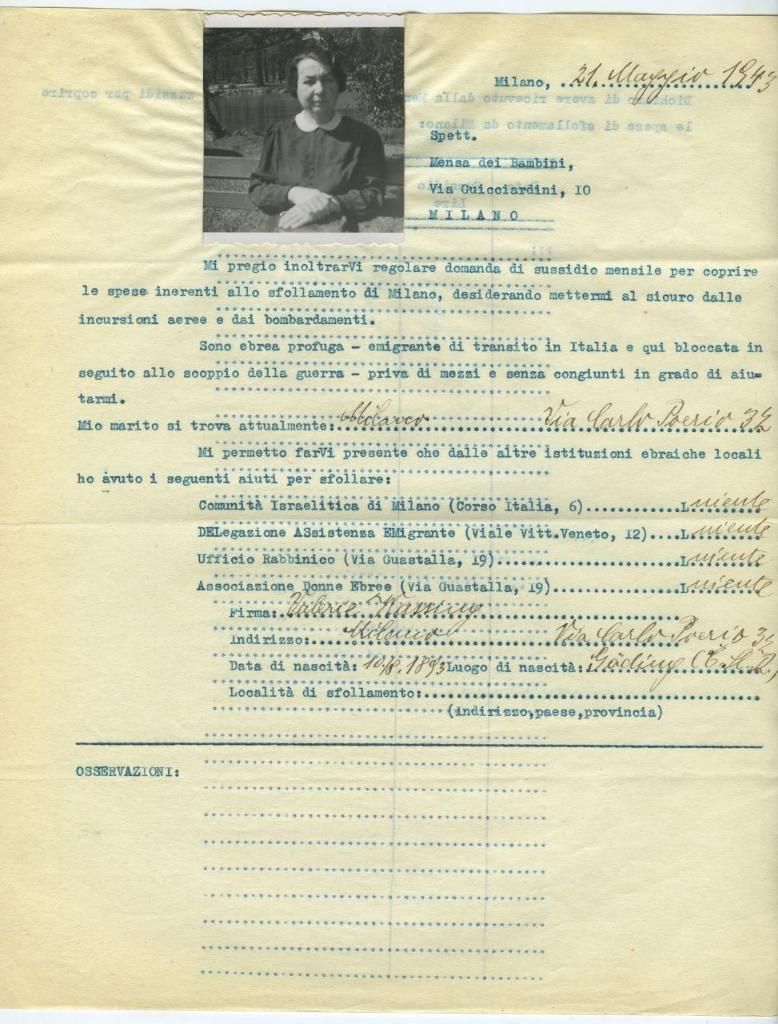 | osservazioni | Il 21 maggio 1943 Valerie Hoherberger in Wassing fa domanda all'Opera Mensa dei Bambini per ricevere un sussidio mensile |