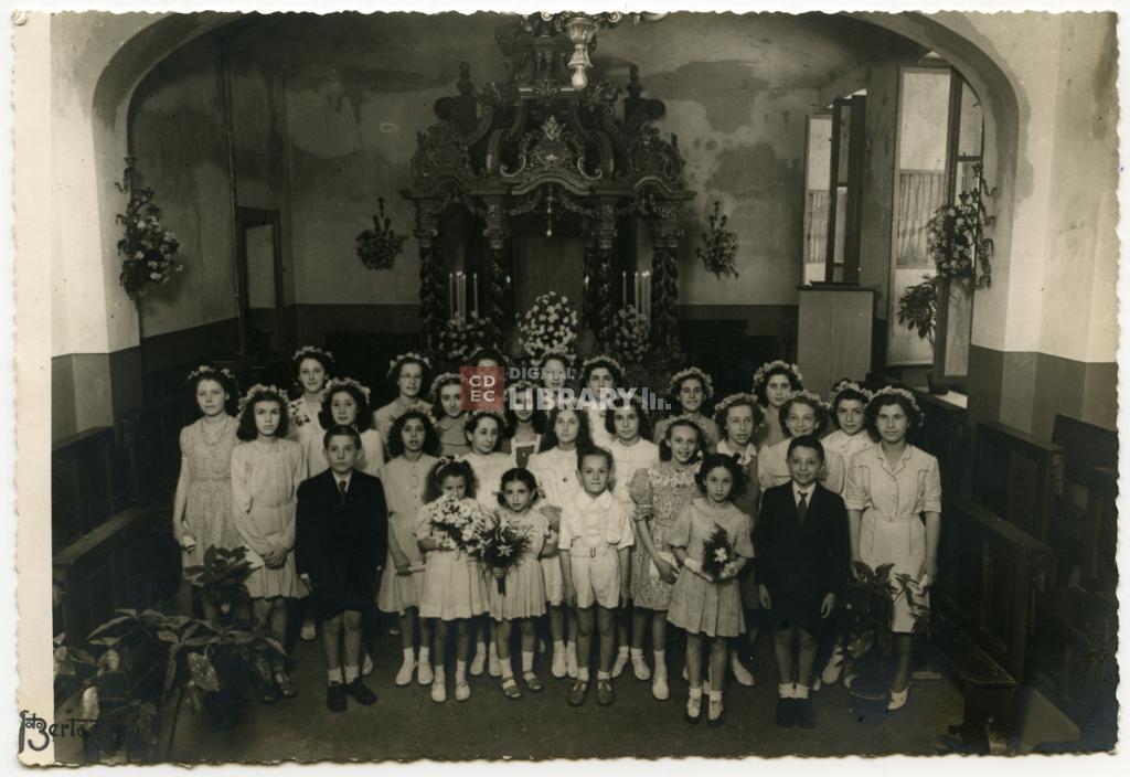 titolo attribuito | Ritratto di gruppo del primo Bat mitzvà del dopoguerra a Torino |