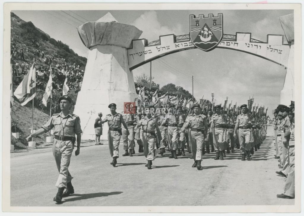 titolo attribuito | Ritratto di militari israeliani all'ingresso della città di Haifa |