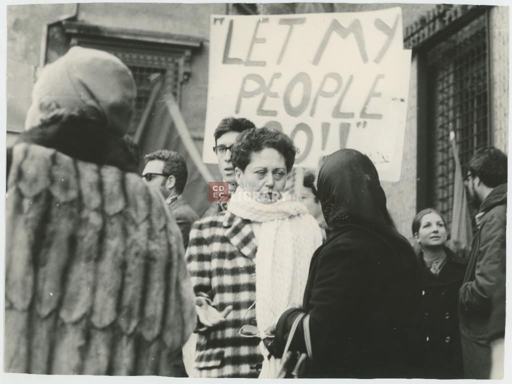 iscrizioni | sul verso del supporto iscrizione manoscritta a penna "Al Bollettino della Comunità Israelitica Milano/ Manifestazione contro Leningrado di Bologna 30.12.1970" |