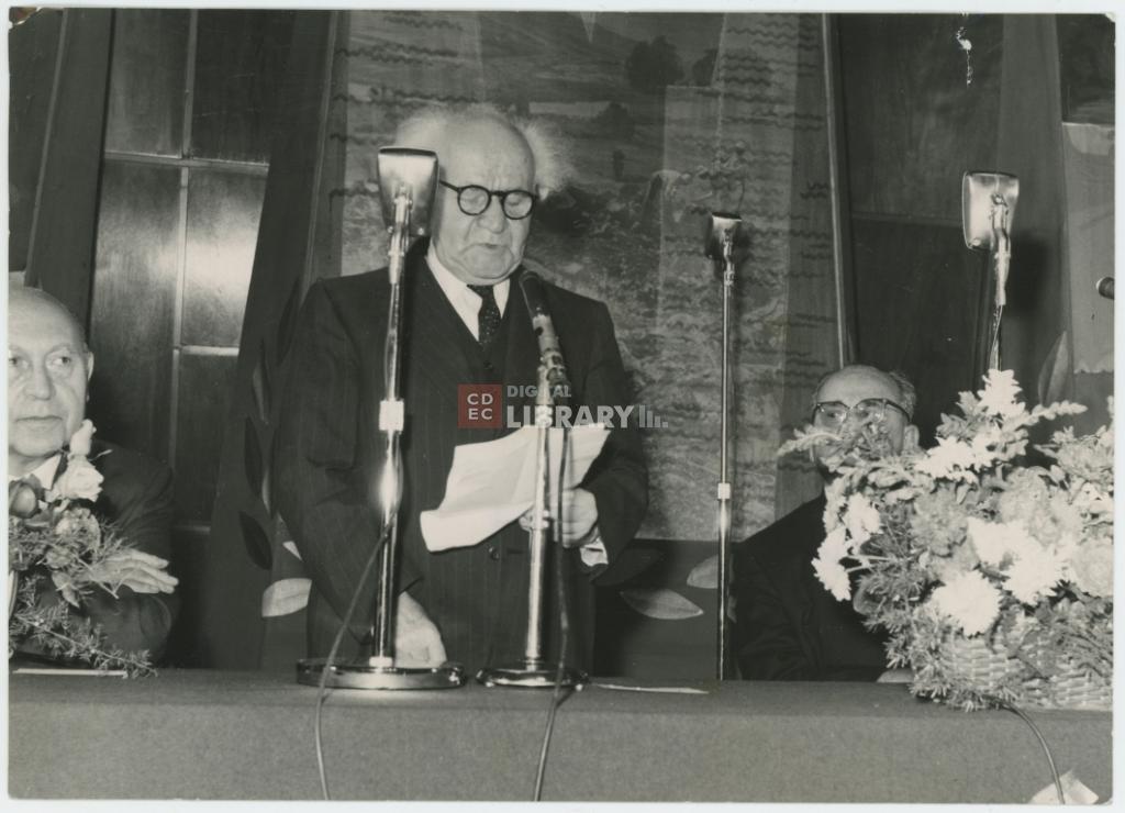 titolo attribuito | Ritratto del Primo Ministro d'Israele Ben Gurion mentre pronuncia il suo discorso alla cerimonia per il 60° anniversario del K.K.L. |