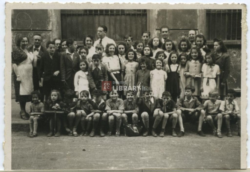 titolo attribuito | Ritratto del gruppo dei bambini e personale all'esterno alla Mensa dei Bambini di Milano |