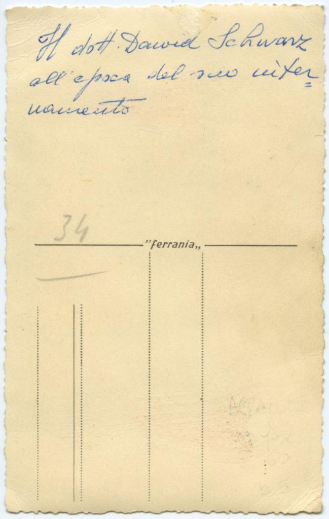 | iscrizioni | sul verso del supporto l'indicazione manoscritta "Il dott. Dawid Schwarz all'epoca del suo internamento" |