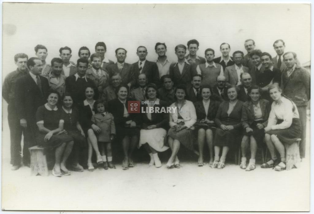 | osservazioni | Mirko Haler è identificato nell'uomo in ultima fila, il quarto da destra; Ivana Haler nella ragazza con lunga treccia seduta su uno sgabello in prima fila, la prima da destra. Lo scatto è stato eseguito nel campo di Ferramonti di Tarsia, come si può vedere dal confronto con analoghi scatti presenti nell'Album 5 del fondo di Israel Kalk |