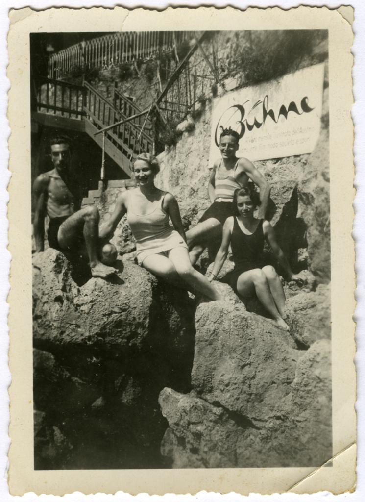 osservazioni | Livio Goldschmied (che sarà deportato) è il secondo da destra. Sul libro di Diana Goldschmied, "Frankel e Goldschmied. Famiglie ebraiche a Trieste tra '800 e '900" a pagina 238 la fotografia è accompagnata dalla seguente didascalia: "Sul lago/ Livio ha il costume a strisce" |