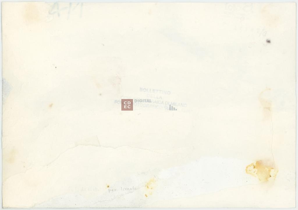 indicazioni sull'oggetto | il verso del supporto è coperto da un foglio bianco che copre le iscrizioni e il timbro del Bollettino della Comunità Israelitica di Milano |