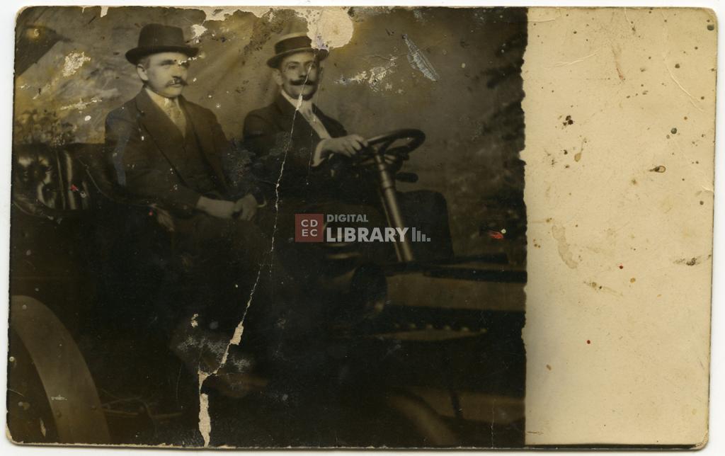 osservazioni | A sinistra Elia Arvanitis, nonno materno della donatrice. Sul libro di Diana Goldschmied, "Frankel e Goldschmied. Famiglie ebraiche a Trieste tra '800 e '900" a pagina 251 la fotografia รจ accompagnata dalla seguente didascalia: "Elia probabilmente a New York quando navigava" |