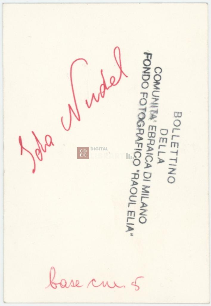 timbri, marchi | sul verso del supporto il timbro a inchiostro "Bollettino della Comunità ebraica di Milano/Fondo Fotografico "Raoul Elia" |