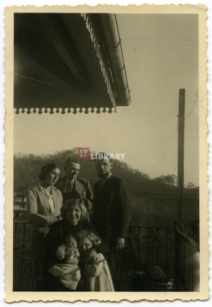 titolo attribuito | Ritratto di Sofia Arvanitis in Goldschmied con i figli Adriano e Diana, il padre Elia Arvanitis e due conoscenti a Vico Canavese |