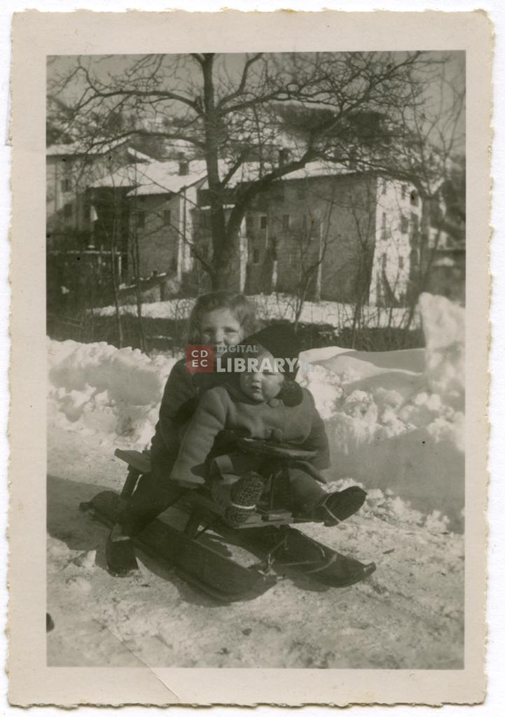 titolo attribuito | Ritratto dei fratelli Diana e Adriano Goldschmied bambini sulla neve a Vico Canavese |
