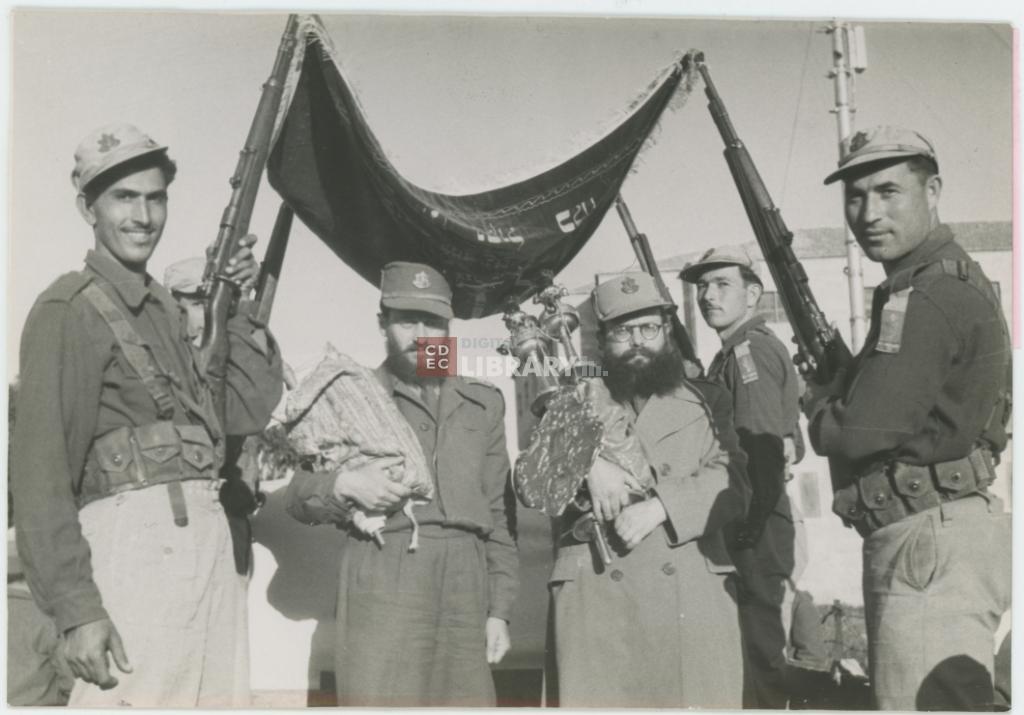 titolo attribuito | Ritratto di alcuni militari che trasportano due Sifrè Torà presso la Sinagoga Maggiore di Yeshurun a Gerusalemme nel giorno dell'Indipendenza |