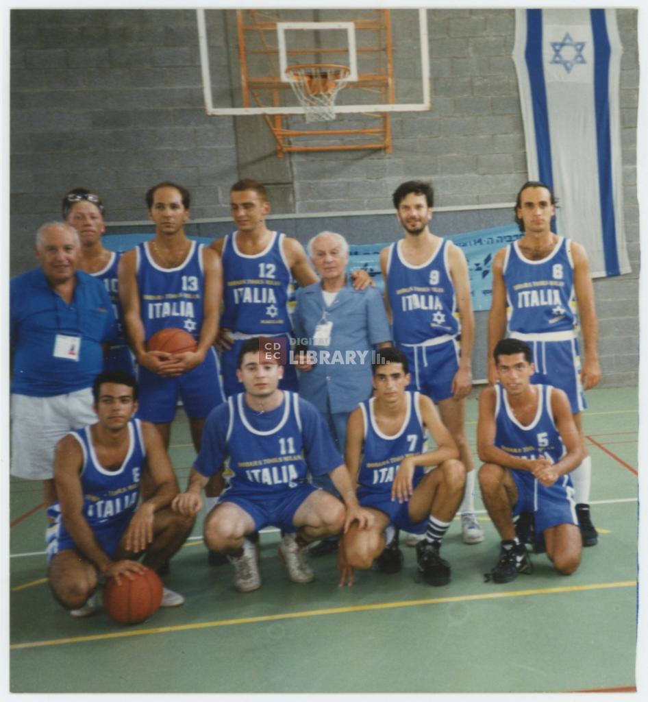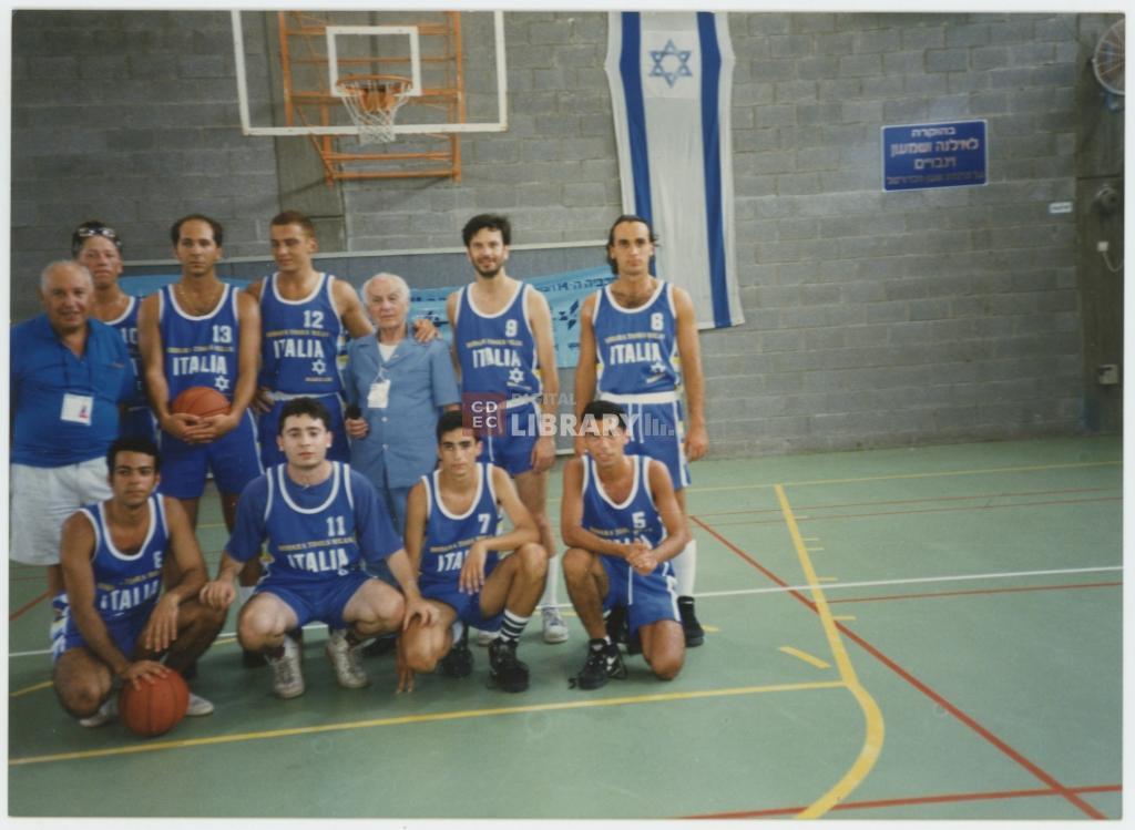 | notizie storico-critiche | La squadra italiana di pallacanestro, convocata in Israele nel luglio 1993 per partecipare alla 14^ edizione delle Maccabiadi, era composta dai seguenti giocatori: Samuele Pescara (di Milano), Roberto Guetta (di Roma), Claudio Coen (di Ancona), Andrea Gabbai (di Milano), Navid Haghigat (di Milano); Yaghoubi Rabin (di Berlino), Marcello Del Monte (di Milano), Maurizio Katri (di Milano), Shamrokh Haghigat (di Milano); era accompagnata Capo Delegazione e Presidente della Federazione Itailana Maccabi Massimo Della Pergola |