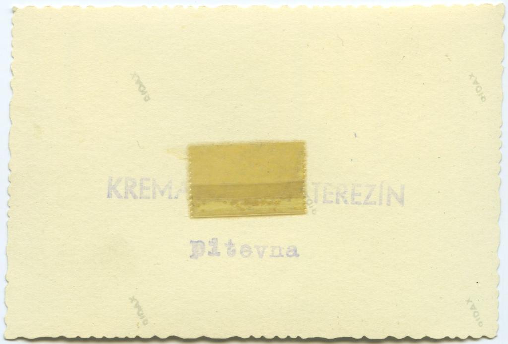 | timbri, marchi | sul verso del supporto il timbro a inchiostro blu con la scritta in lingua ceca "Krematorium Terezin/ pitevna" [Crematorio Terezin/ sala delle dissezioni] |