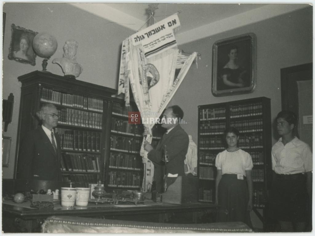 | titolo attribuito | Veduta della stanza di Herzl durante la cerimonia di consegna della bandiera di Gerusalemme |