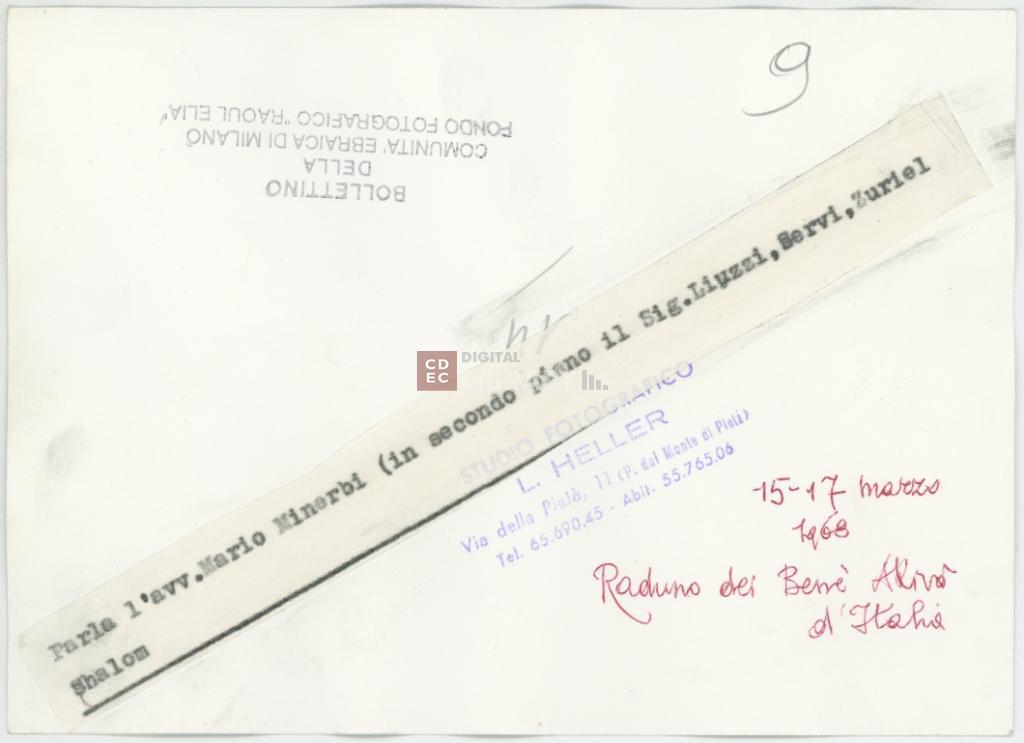 timbri, marchi | sul verso del supporto il timbro a inchiostro "Bollettino della Comunità ebraica di Milano/ Fondo Fotografico "Raoul Elia" |