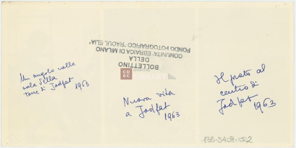 timbri, marchi | sul verso del supporto il timbro a inchiostro "Bollettino della Comunità ebraica di Milano/ Fondo Fotografico "Raoul Elia" |