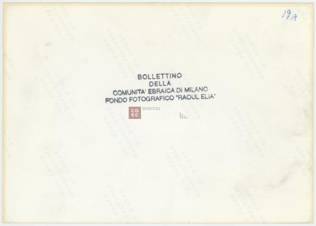 timbri, marchi | sul verso del supporto il timbro a inchiostro "Bollettino della Comunità ebraica di Milano/ Fondo fotografico "Raoul Elia" |